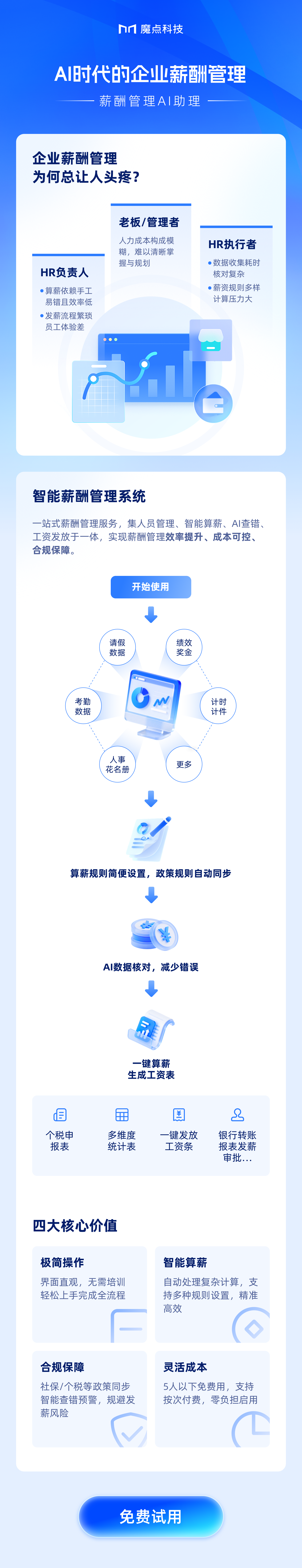 目录 搜索 魔点办公小程序用户手册登录注册机构管理人员管理与信息录入设备管理门禁管理考勤管理访客管理审批中心个人中心小程序工作台常开计划薪资计算魔点办公小程序常见问题人脸录入后没有生效如何进行设备升级如何解绑并重置门禁设备如何为设备配置网络魔点智能云平台用户手册产品简介账号体系机构设置通讯录卡片管理空间档案设备管理魔点门禁魔点考勤魔点访客魔点会议室魔点审批魔点测温预警魔点签到魔点梯控算薪管理新用户引导 暂无相关搜索结果! 本文档使用 MinDoc 发布 薪资计算 12 计算薪资 如有薪资计算软件需求,可扫码添加微信联系试用 文档更新时间: 2025-12-16 01:22 作者:admin